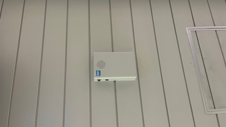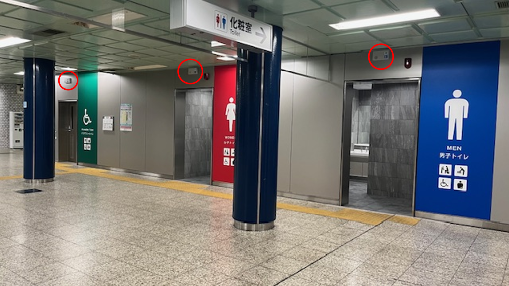 センサーに反応して、化粧室入口の方向を音声案内にてお知らせします。