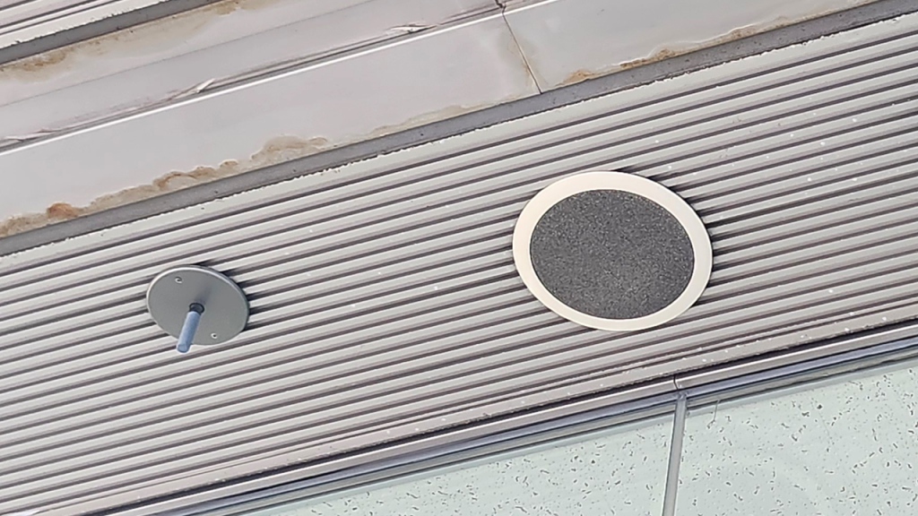 一定の間隔ごとに目的地から鳥(ヒバリ)の鳴き声を流し、入口へ誘導します。