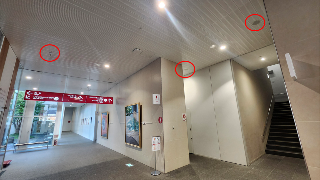 一定の間隔ごとに目的地から鳥(ウグイス)の鳴き声を流し、入口へ誘導します。