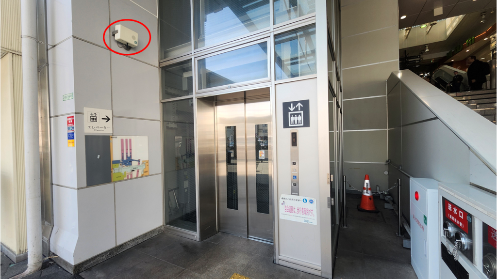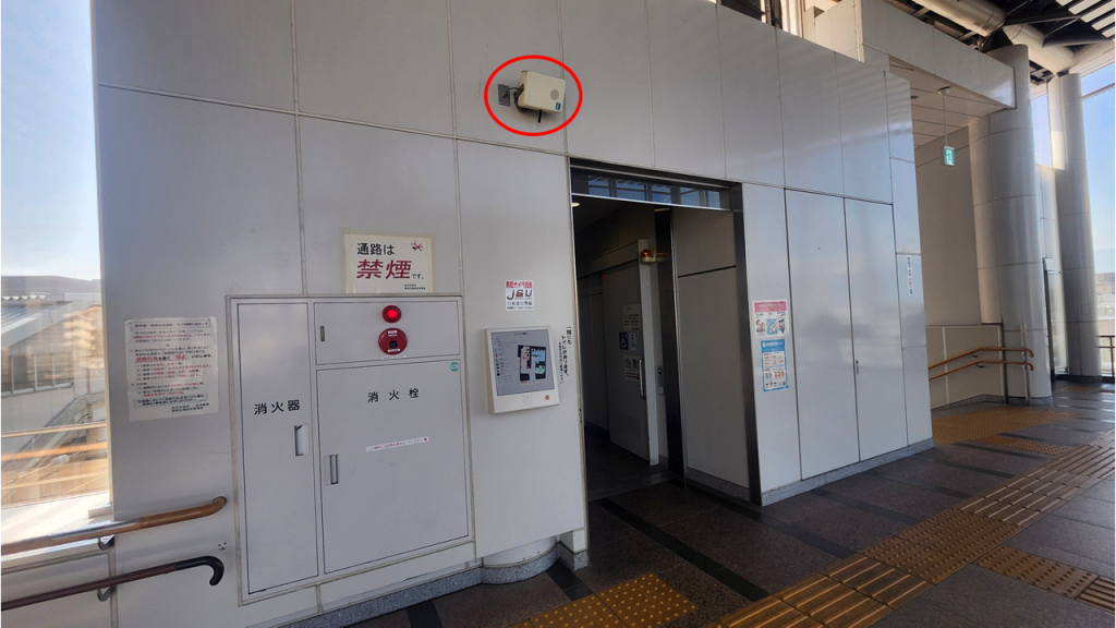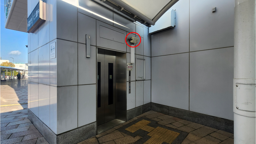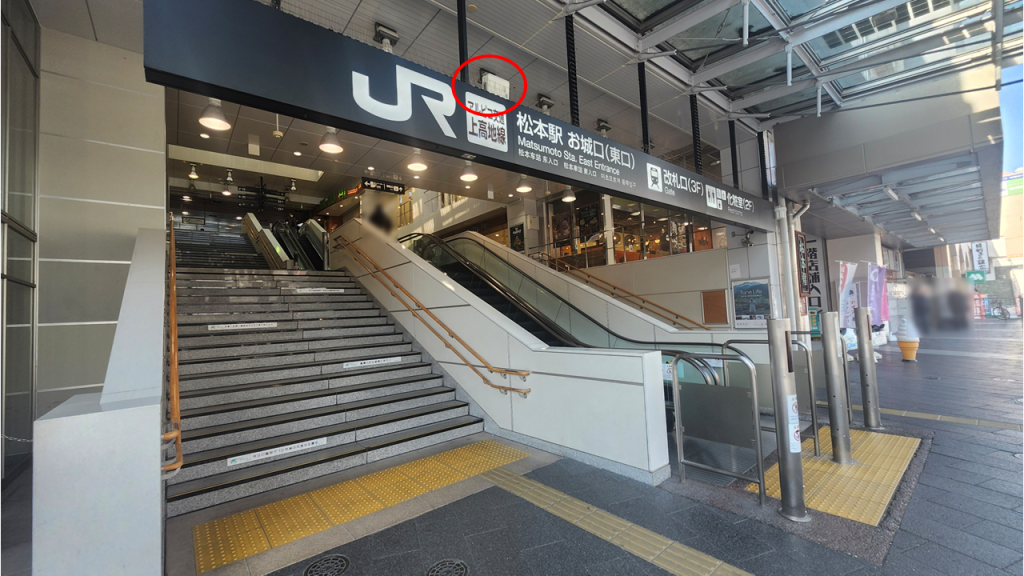 一定の間隔ごとにチャイムを流し、駅へつながる階段に誘導します。