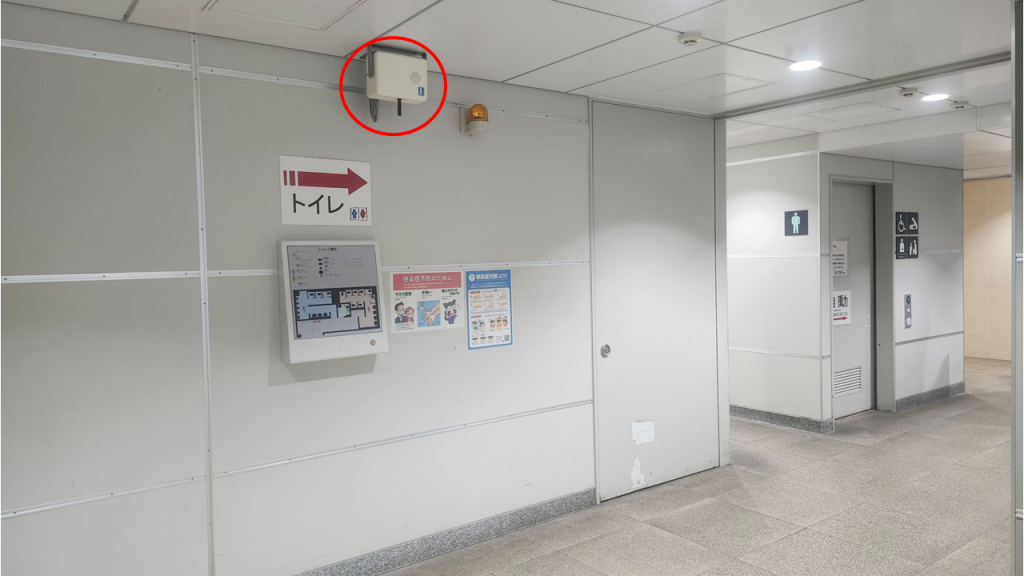 シグナルエイド(小型送受信機)に反応して、各トイレの入口を音声にてお知らせします。